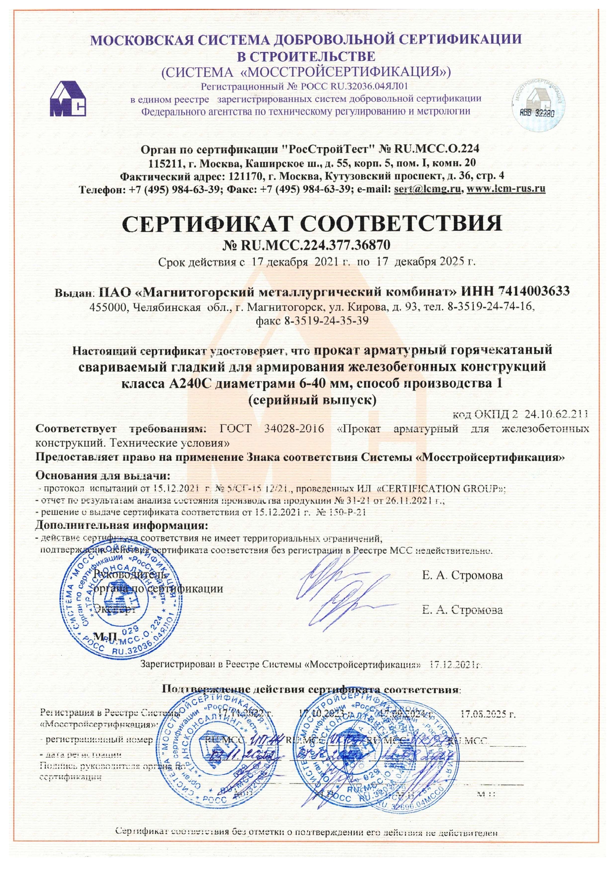 Сертификаты качества